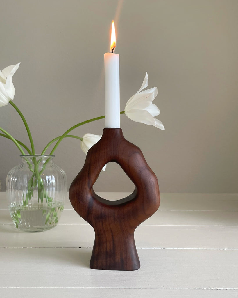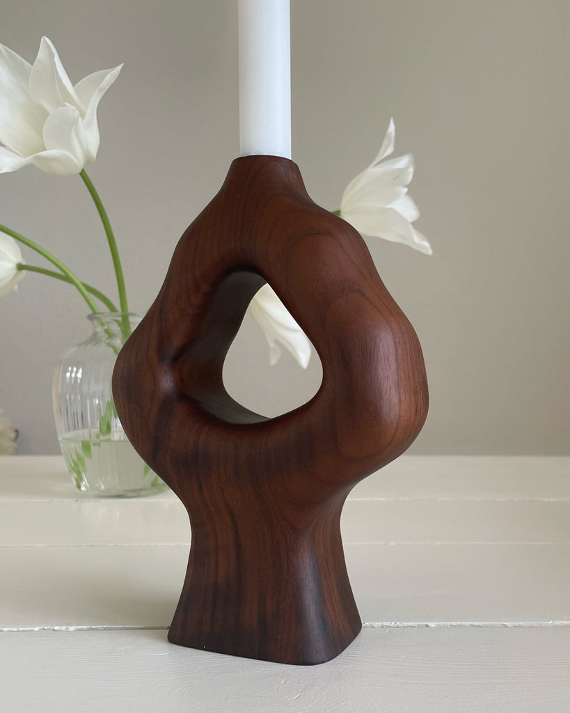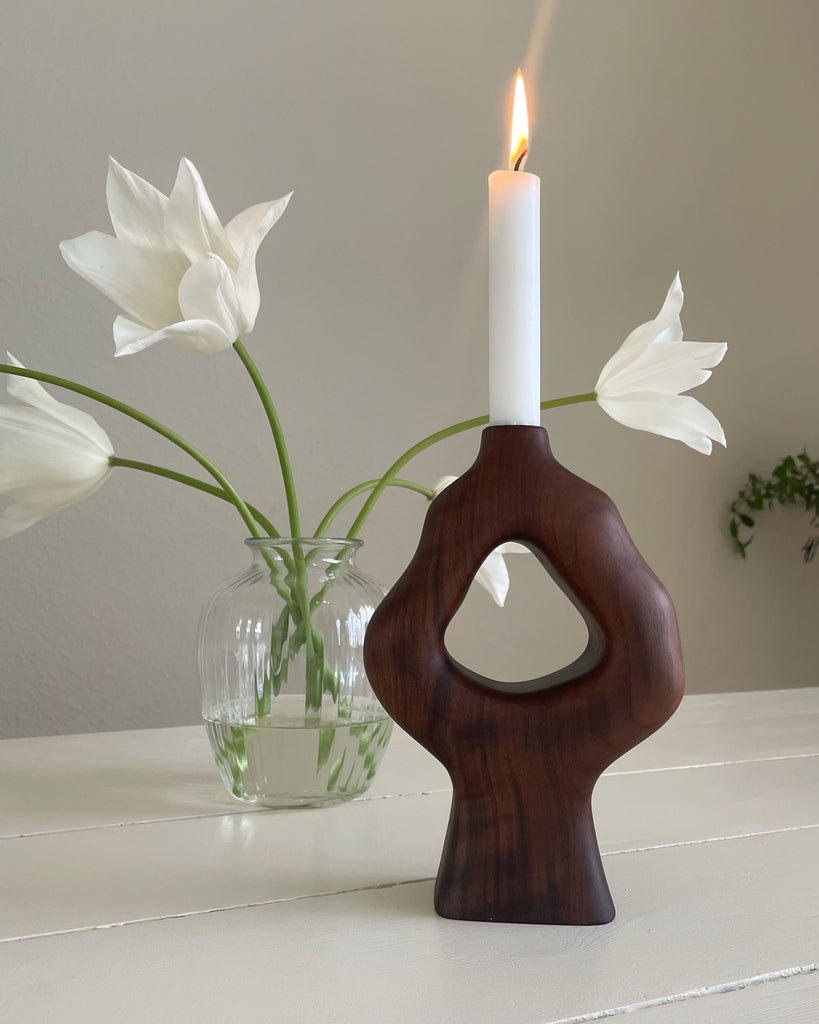 Håndlavet lysestage i amerikansk valnød.