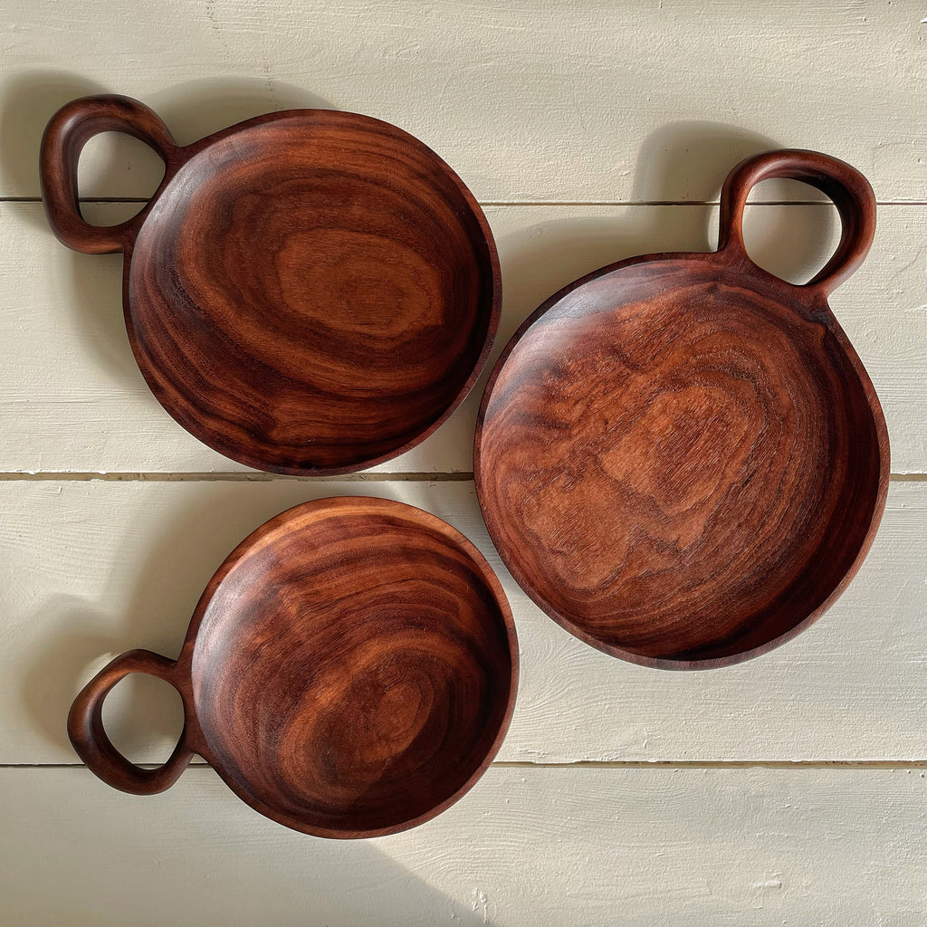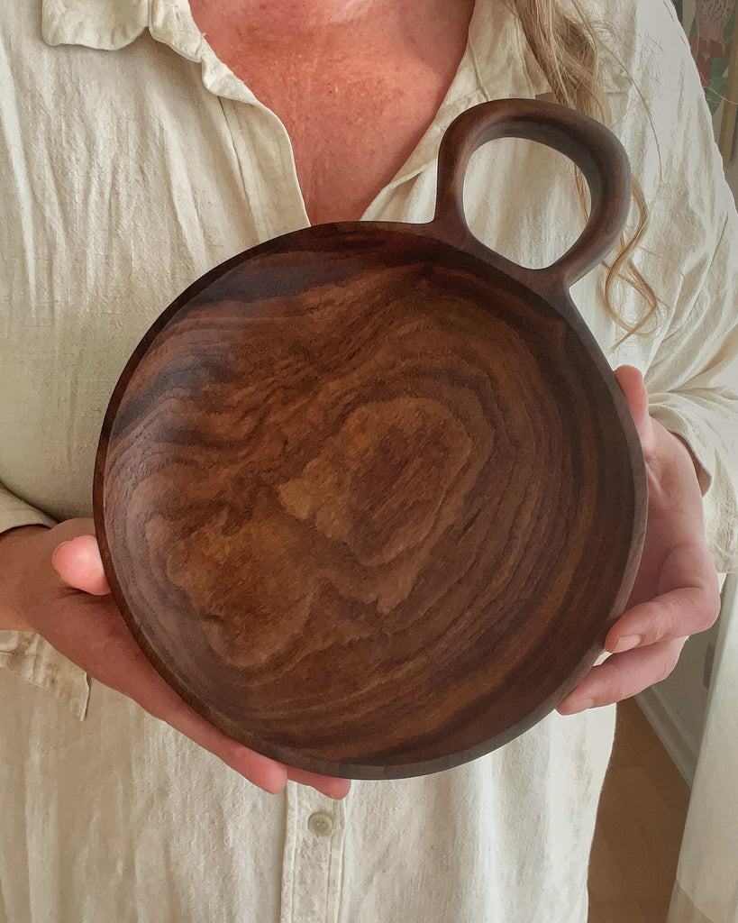 Som traditionen tro, er alle produkter hos Vestergaards trædesign bearbejdet i hånden. Det skaber et unikt design, men med den klassiske Vestergaards signatur, som kun kan opnås i Rikkes hænder. Træets glød og struktur fremtræder ved brug af hørfrøolie og bivoks, som er let vand- og smudsafvisende og som tåler kontakt med fødevarer.