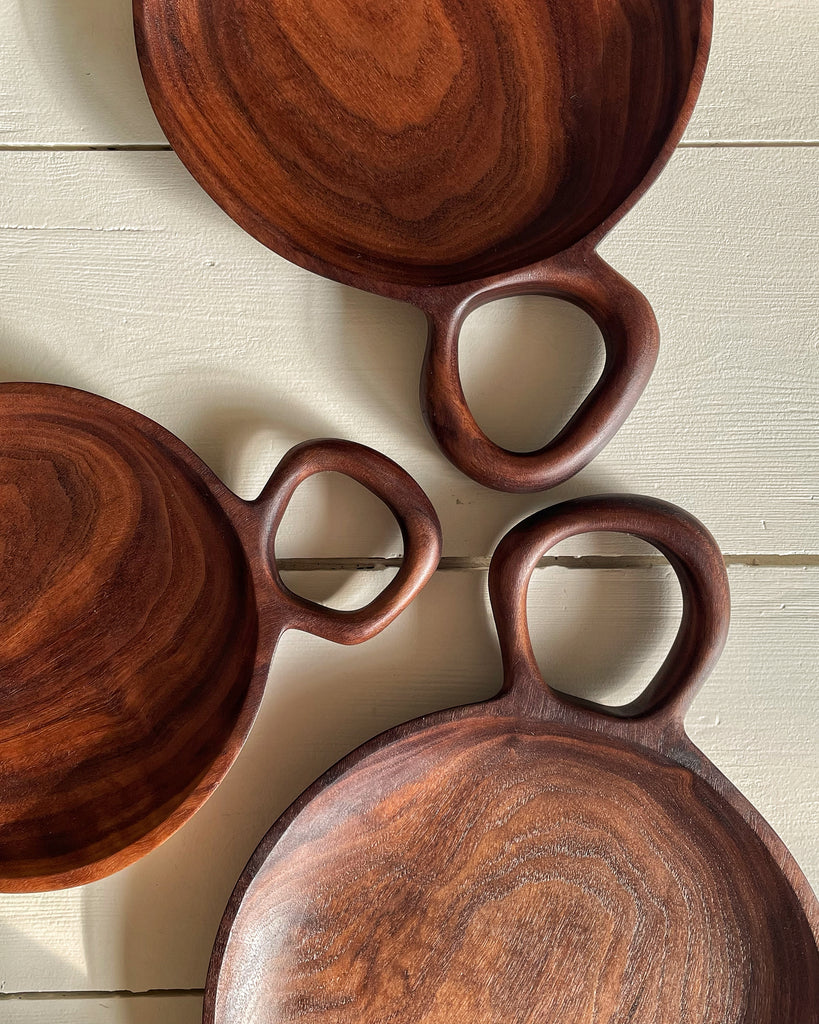 Som traditionen tro, er alle produkter hos Vestergaards trædesign bearbejdet i hånden. Det skaber et unikt design, men med den klassiske Vestergaards signatur, som kun kan opnås i Rikkes hænder. Træets glød og struktur fremtræder ved brug af hørfrøolie og bivoks, som er let vand- og smudsafvisende og som tåler kontakt med fødevarer.