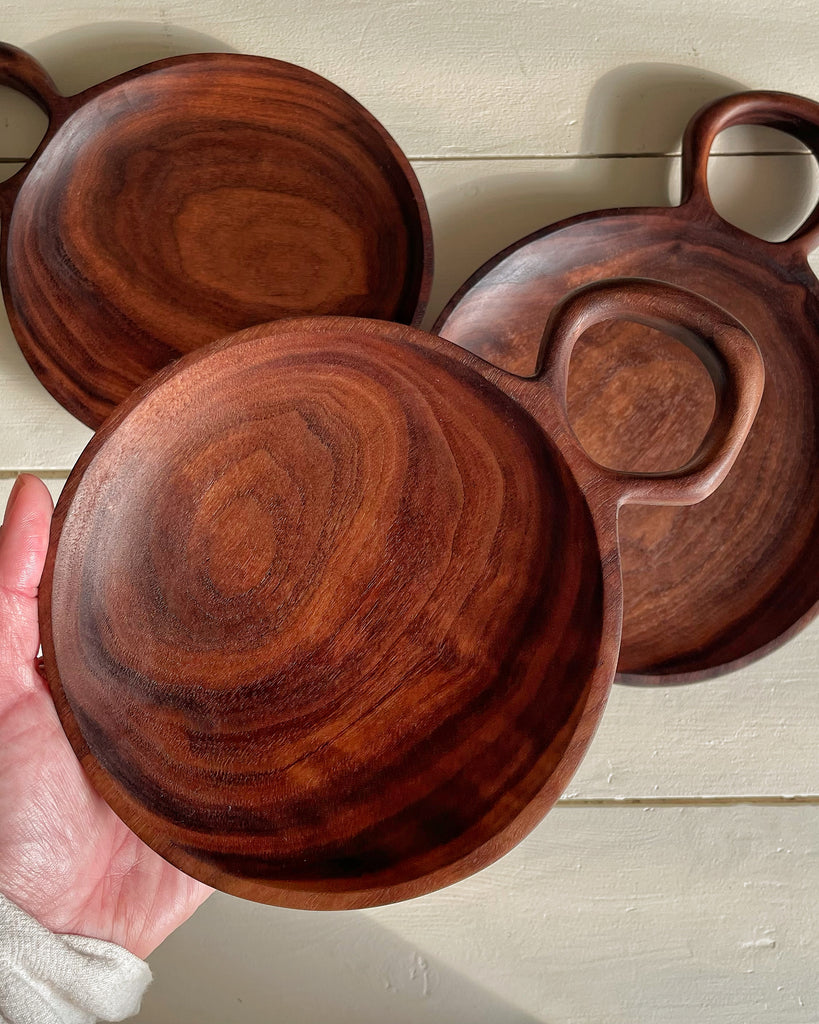 Som traditionen tro, er alle produkter hos Vestergaards trædesign bearbejdet i hånden. Det skaber et unikt design, men med den klassiske Vestergaards signatur, som kun kan opnås i Rikkes hænder. Træets glød og struktur fremtræder ved brug af hørfrøolie og bivoks, som er let vand- og smudsafvisende og som tåler kontakt med fødevarer.